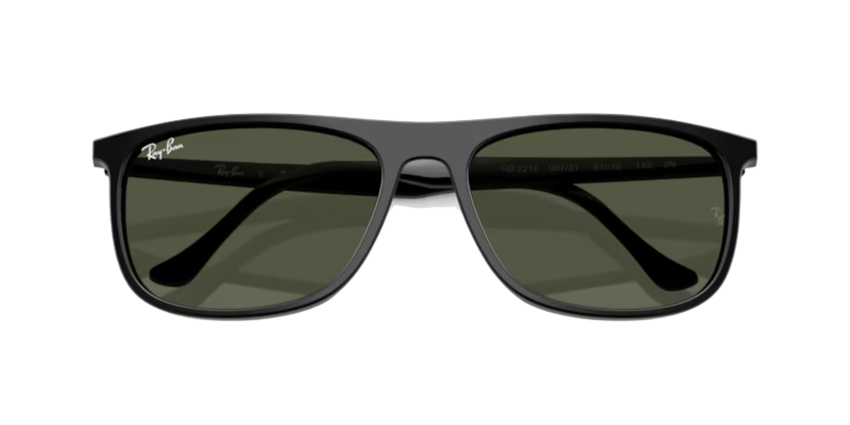 Ray-Ban RB2216 901/31, markanın zamansız tasarım anlayışını dikdörtgen form ile buluşturan bir modeldir. Siyah cilalı asetat çerçeve, hem hafif hem de sağlam yapısıyla günlük kullanıma uygundur. Yüksek köprülü tasarımı, yüz hatlarına uyum sağlayarak konforlu bir kullanım sunar.